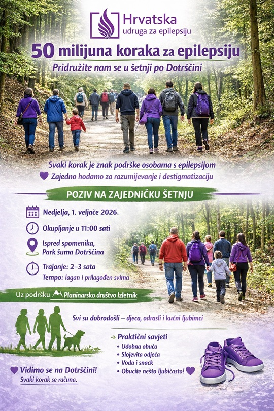 I ove godine Hrvatska udruga za epilepsiju s ponosom se uključuje u međunarodnu kampanju „50 milijuna koraka za epilepsiju“, čiji je cilj podizanje svijesti o epilepsiji, poticanje tjelesne aktivnosti i zajedništva te smanjenje stigme s kojom se osobe s epilepsijom i dalje susreću.