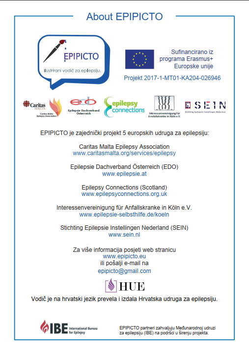 📖 Knjižicu su izradili međunarodni partneri u okviru projekta EPIPICTO, uz podršku Međunarodne udruge za epilepsiju (IBE), a na hrvatski jezik ju je prevela i izdala Hrvatska udruga za epilepsiju.